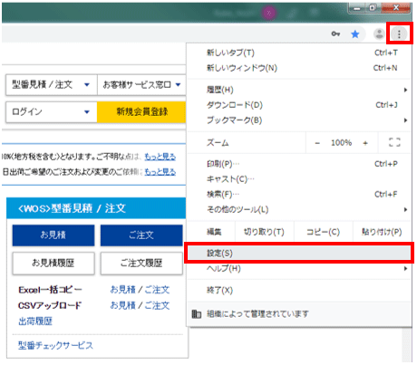 1. Chromeを起動し、画面右上にあるChrome メニューをクリックし、[設定]をクリックします。