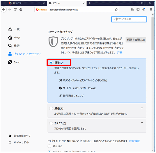 ※Firefoxの規定設定ではCookieが有効になっています。