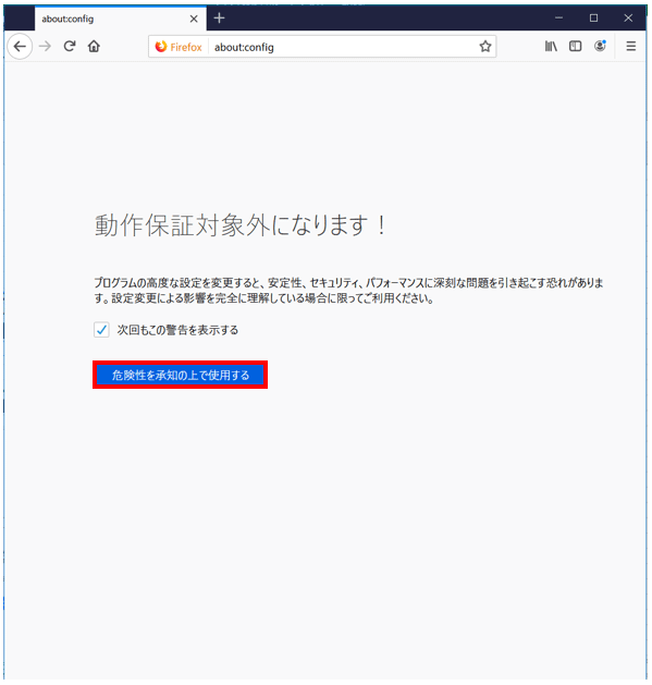 1.URL欄に「about:config」と入力し、[→]をクリックします。