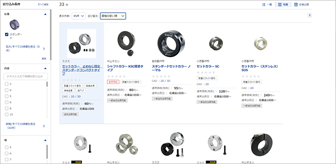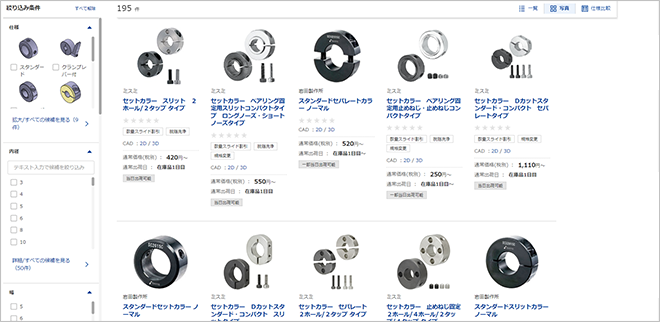 絞り込み検索では、仕様や寸法から商品を絞り込むことができます。