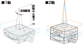 手動ステージで位置決め調整できるのは、前後左右だけではありません。傾斜、回転、更には複数のステージを組合せた多軸ユニットならば、複雑な動きが出来ます。