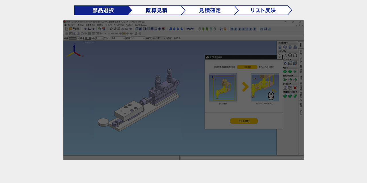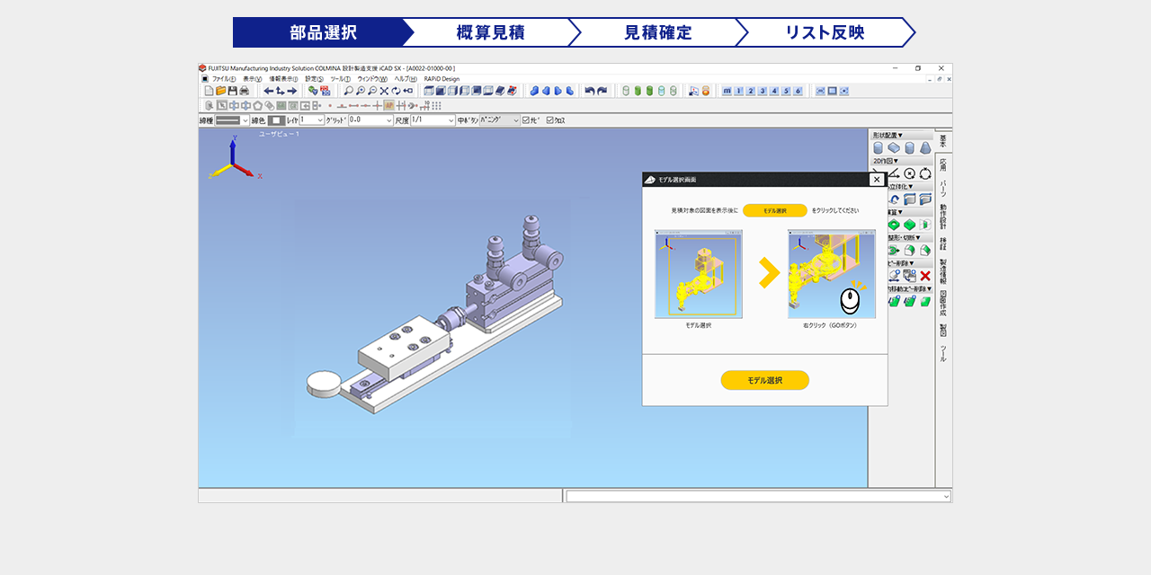 モデル選択ボタンをクリックし、見積もりたい部品を選択