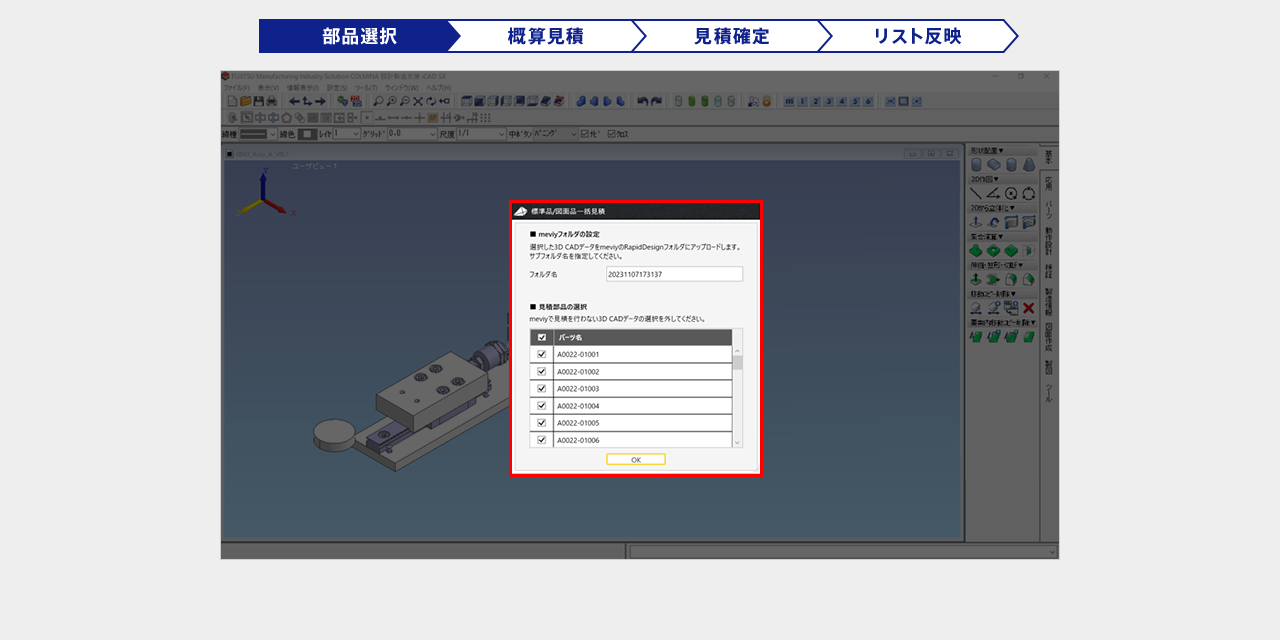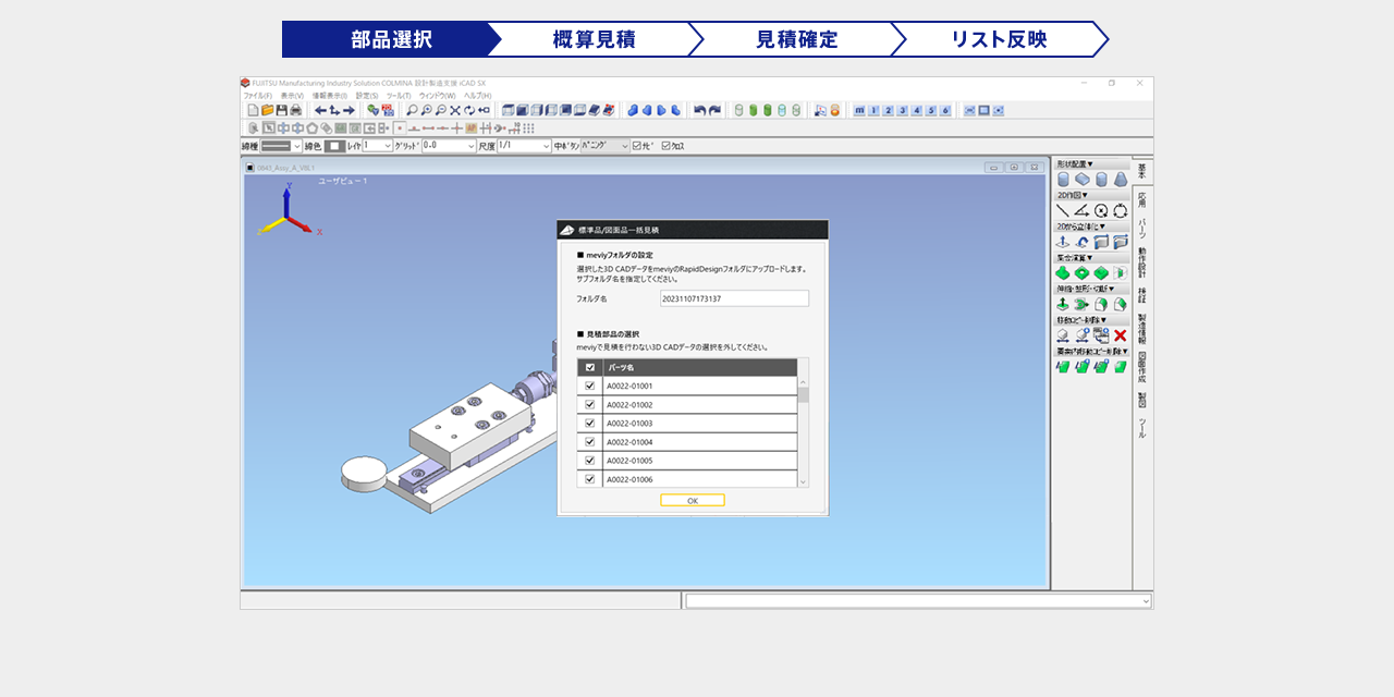 確定後、RAPiD Designへ戻り見積結果をリストに反映