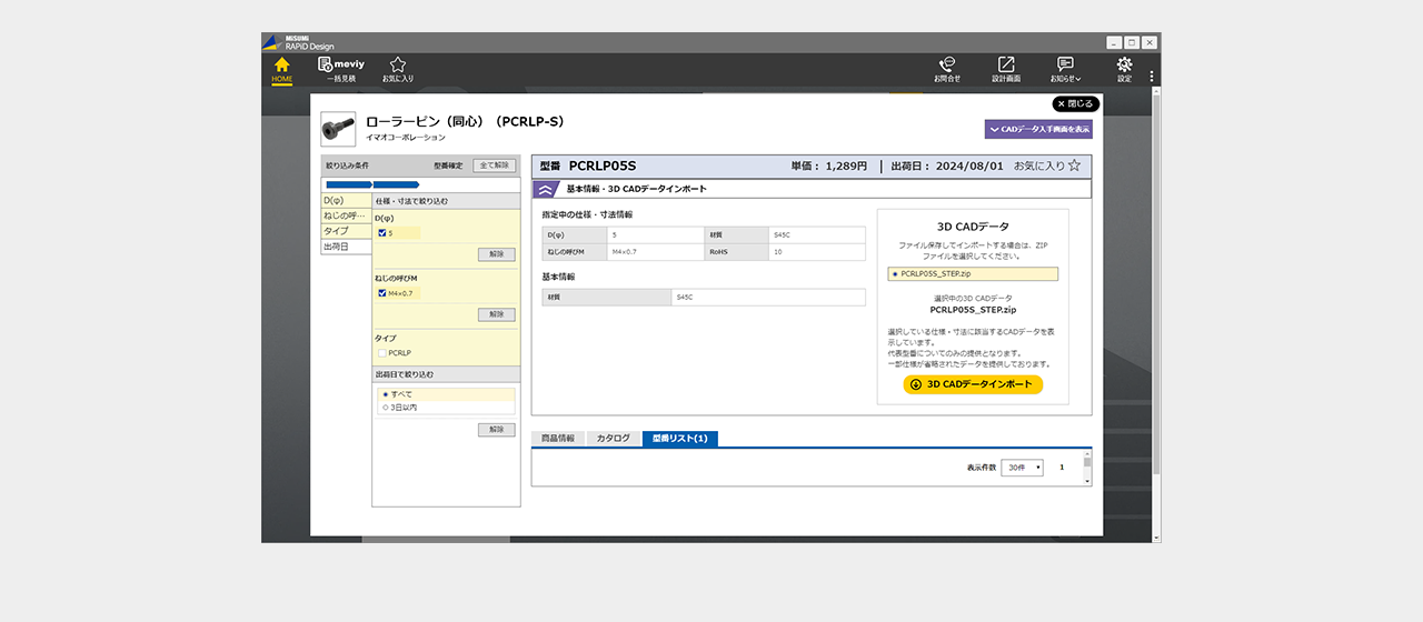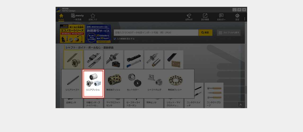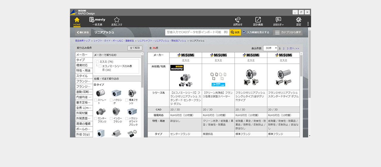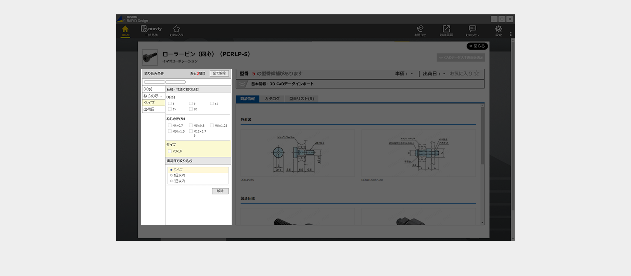 ミスミ以外のメーカー品は検索画面で全ての仕様を選択し型番を確定