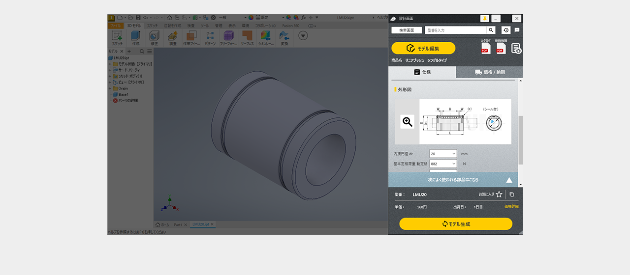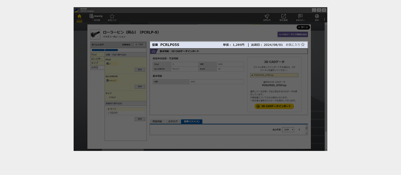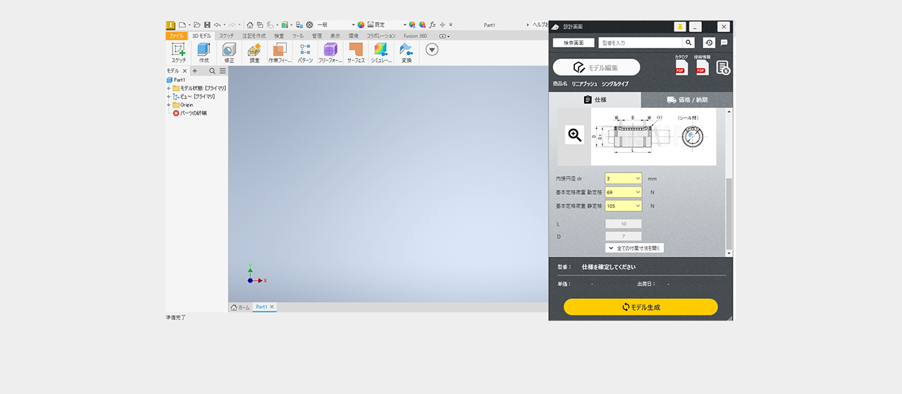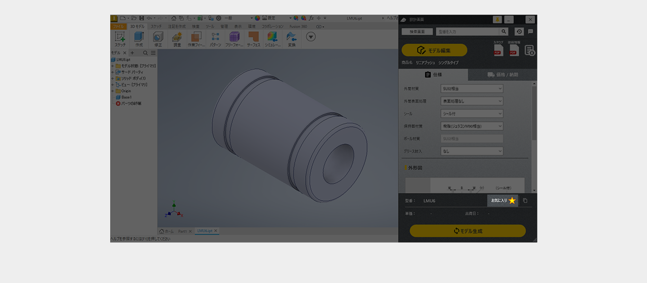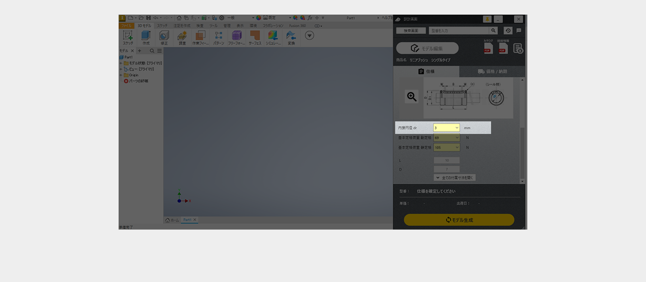ミスミ以外のメーカー品は検索画面で全ての仕様を選択し型番を確定
