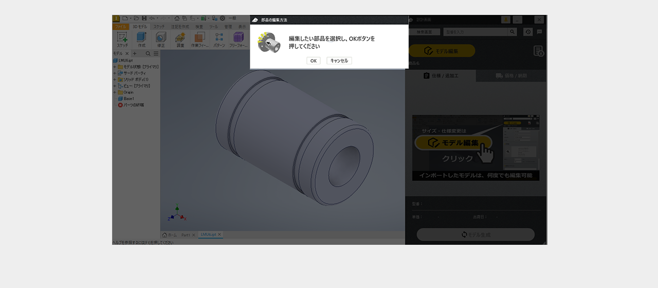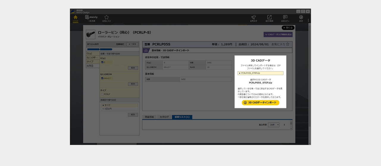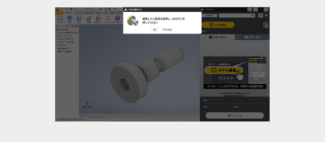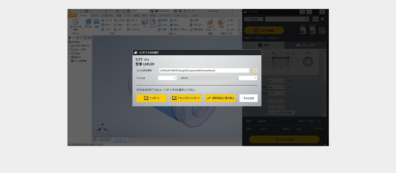 ファイルの保存場所を選択後3D CADデータインポートをクリック