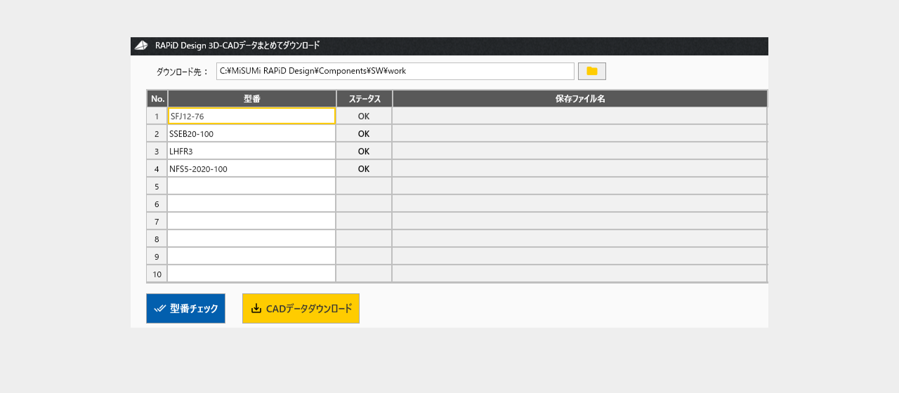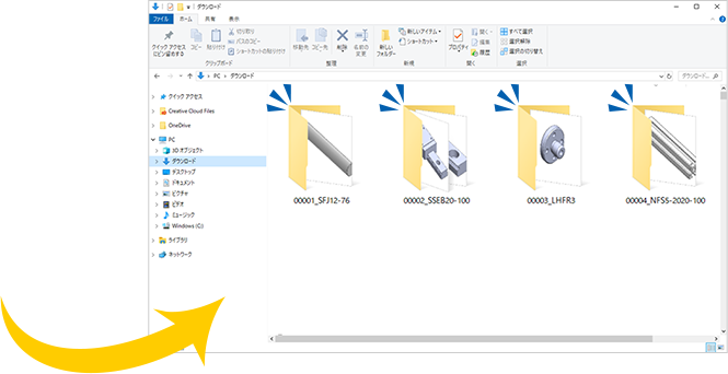 複数の3D-CADデータをまとめてダウンロード可能です