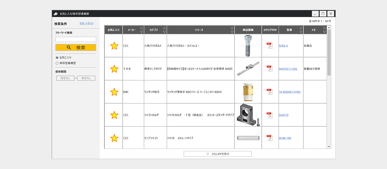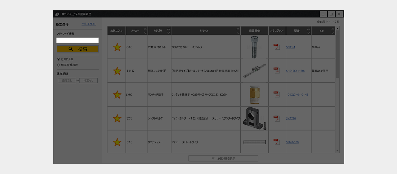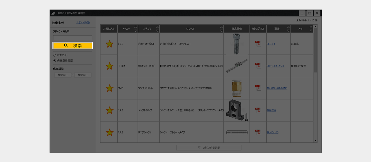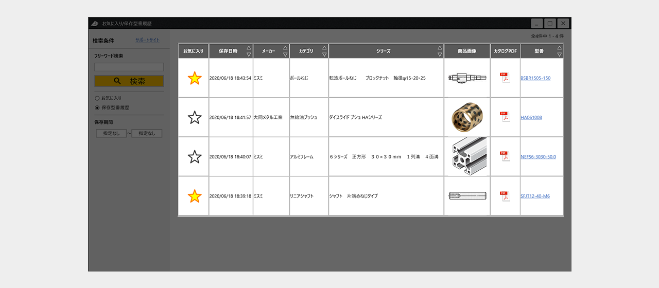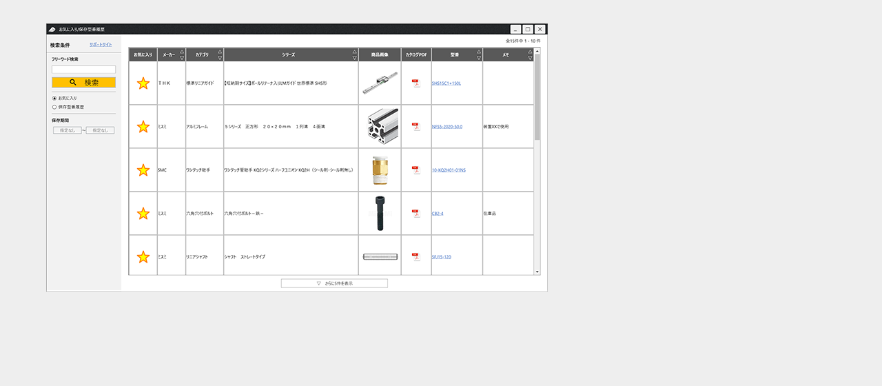 お気に入り/保存型番履歴機能のかんたん操作方法は以上です
