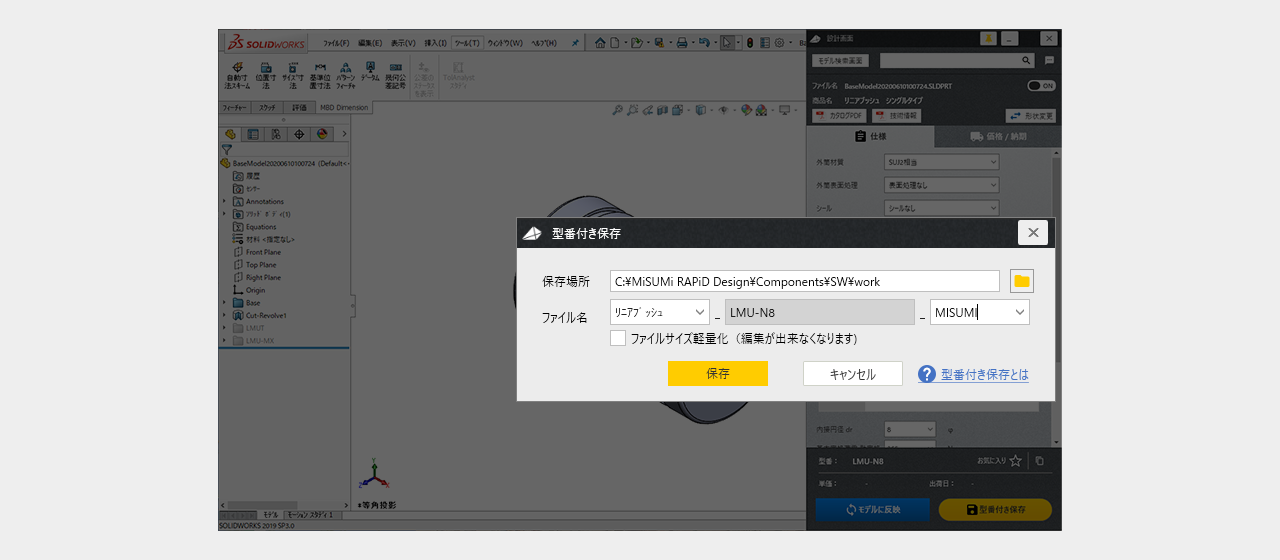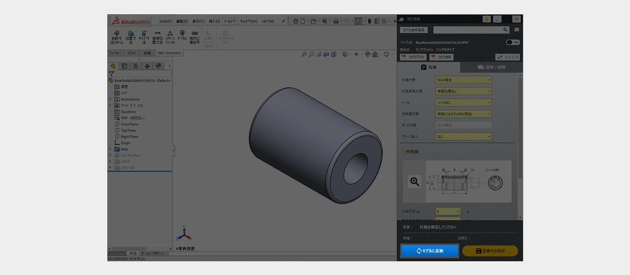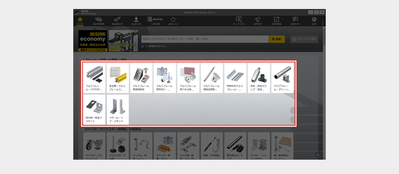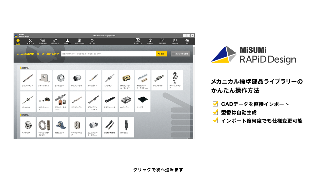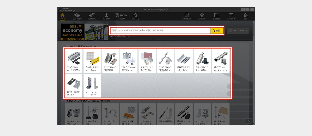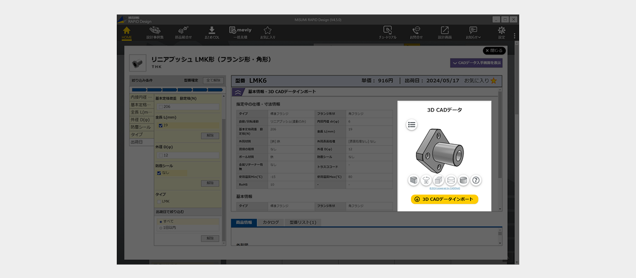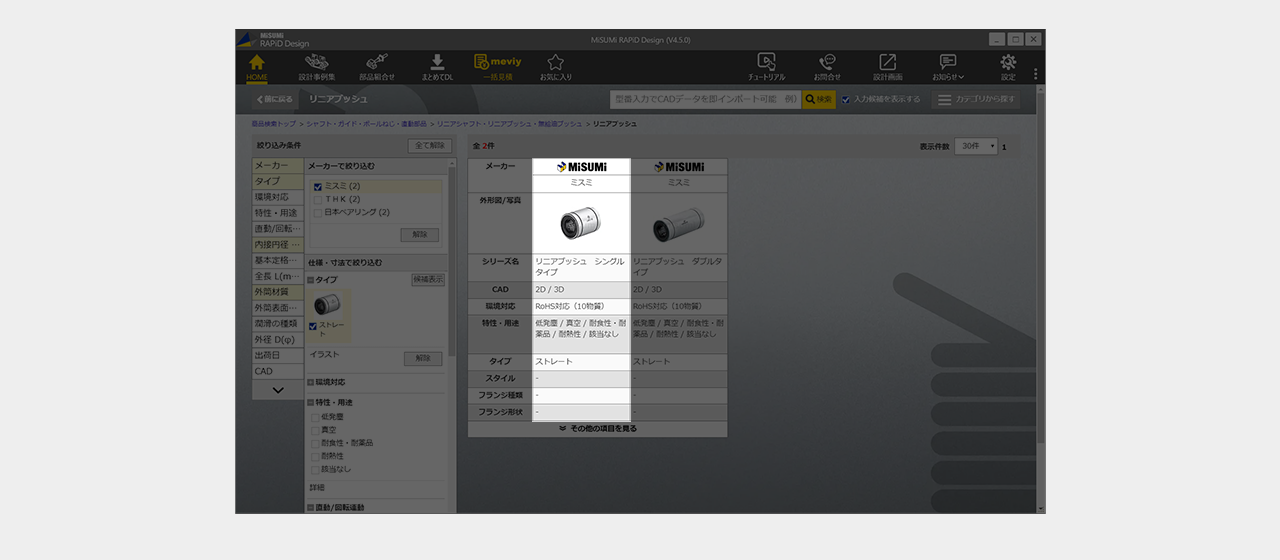ミスミ以外のメーカー品は検索画面で全ての仕様を選択し型番を確定