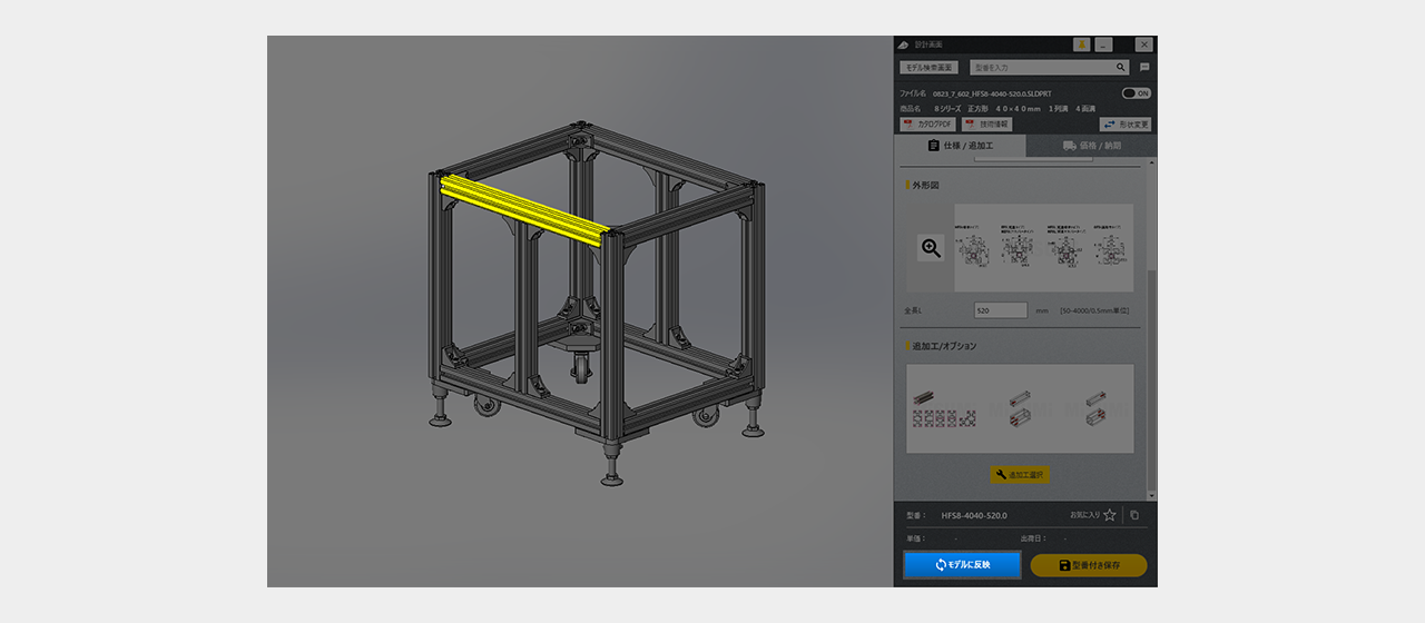 仕様がCADモデルへ反映されます