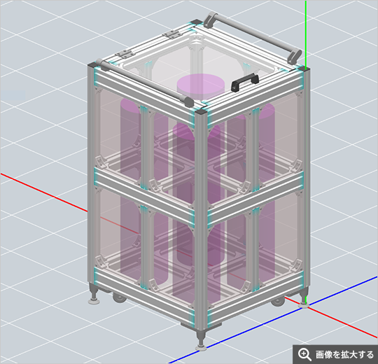 • 積載部は下からパネル(PAAL)を配置し、ワークがフレームの枠にはまってずれないように設計