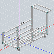 • 従来は市販品を使用していたが、台車重量が重いうえにハンドルの持ち手も小さく、使い勝手が悪かったため、オリジナルの台車を設計した