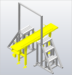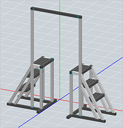 ・格子状でなく斜めに2本の補強用 フレームブラケットを配置 ・ヘックスレンチの下穴をあけ階段ステップ部 とタッピングジョイントで締結