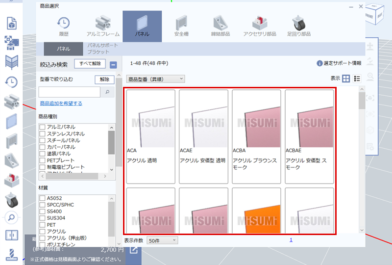 選択したパネルから自動で詳細の仕様が適用されているため
