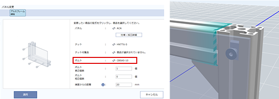 皿ボルトに変更した際には、パネルの厚み変更が必要な場合が