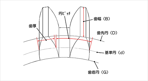 基準円直径とは歯の大きさの基準となる円の直径です。記号はdとなります。